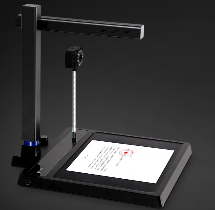 配備專業的“CZUR Shine+”圖像處理軟件,OCR文字識別行業領先技術,萬向軟管副攝像頭,支持360°旋轉拍攝可對場景進行預覽、錄像、拍攝等